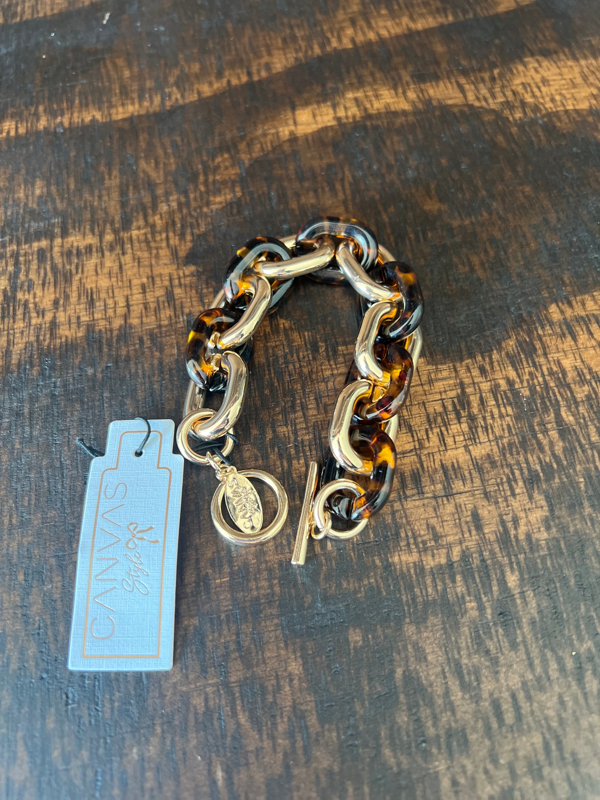 Ava Resin Linked Toggle Bracelet in Tortoise