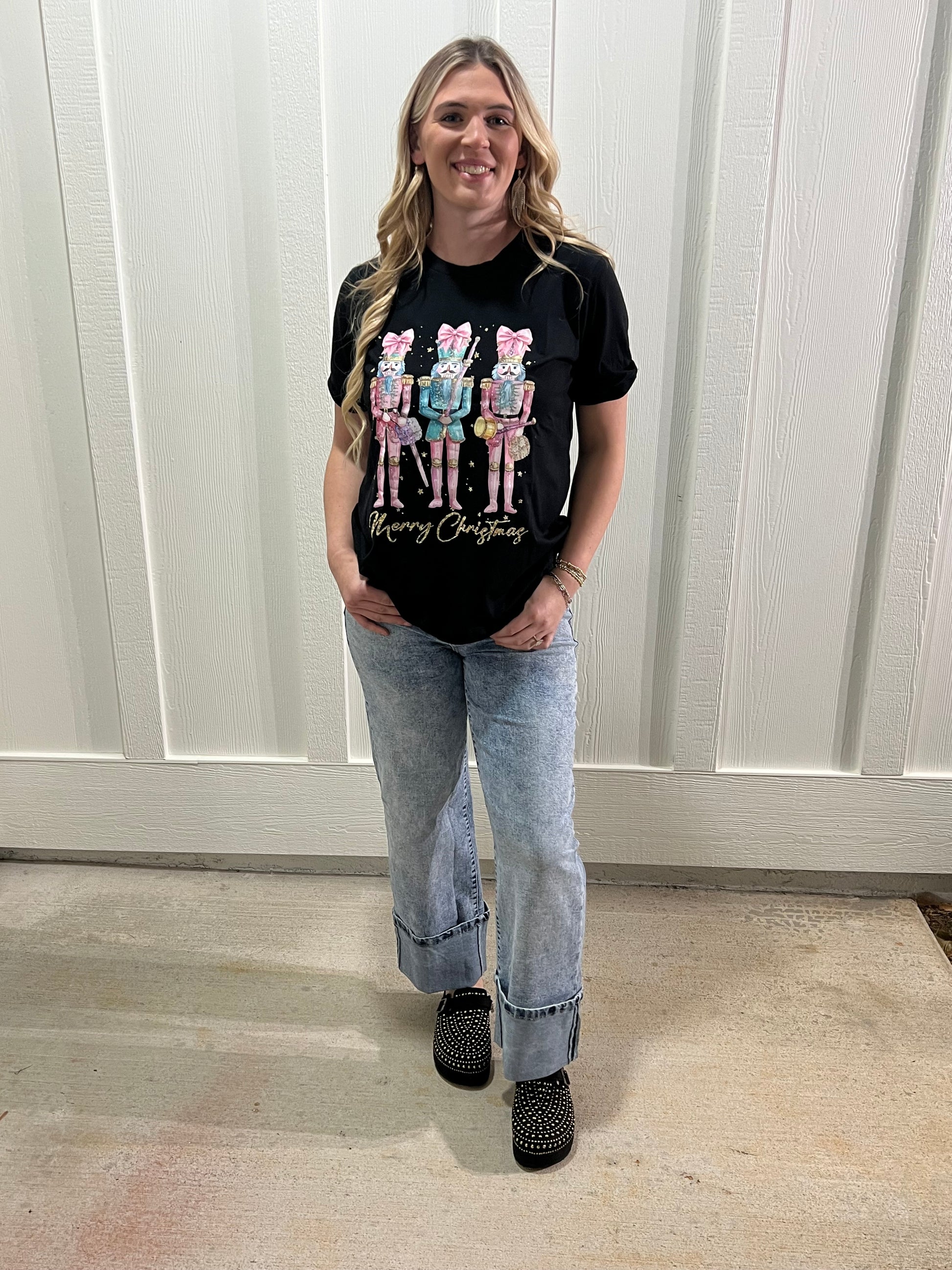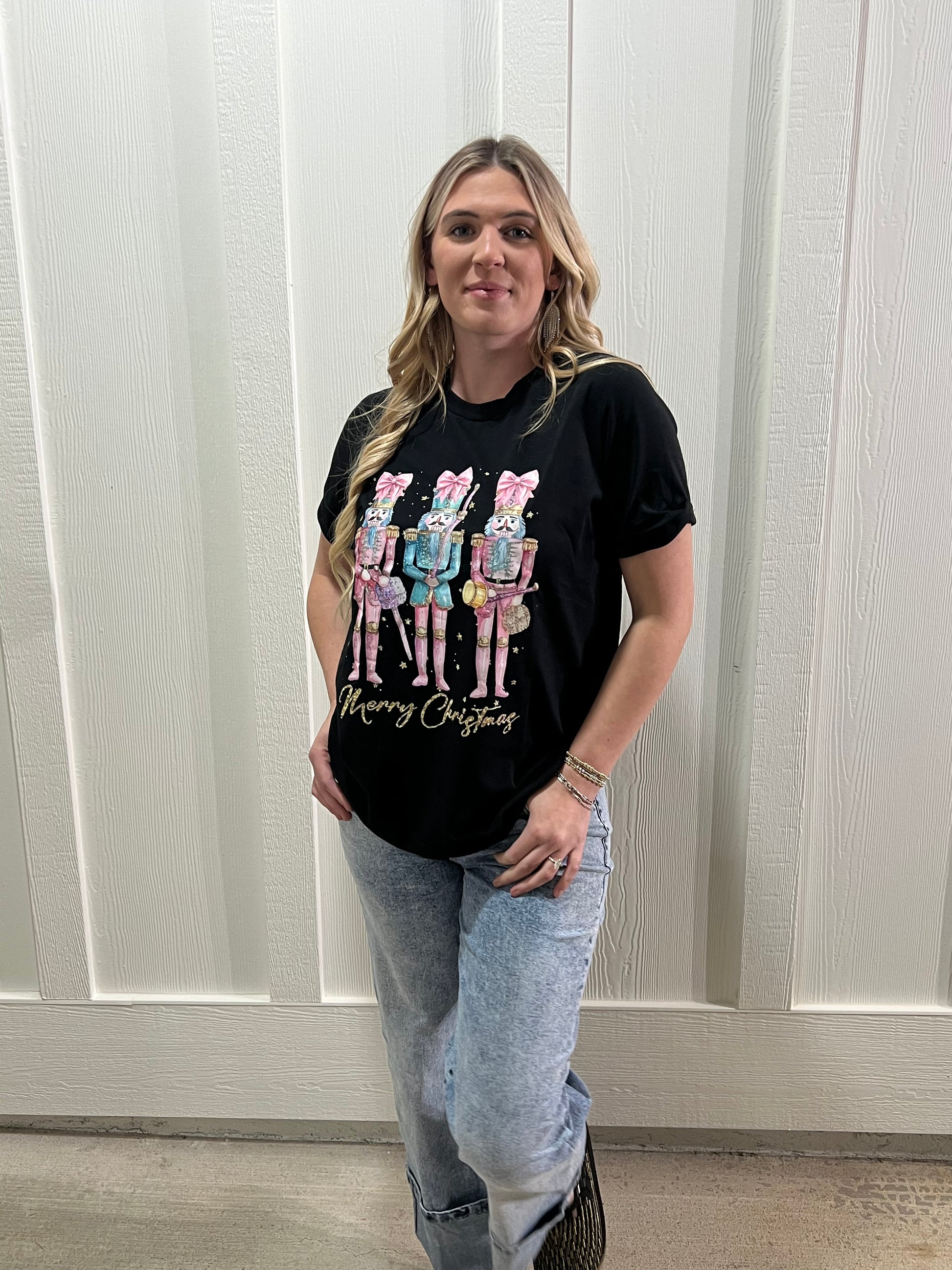 Black Nutcracker Merry Christmas Crewneck T-Shirt