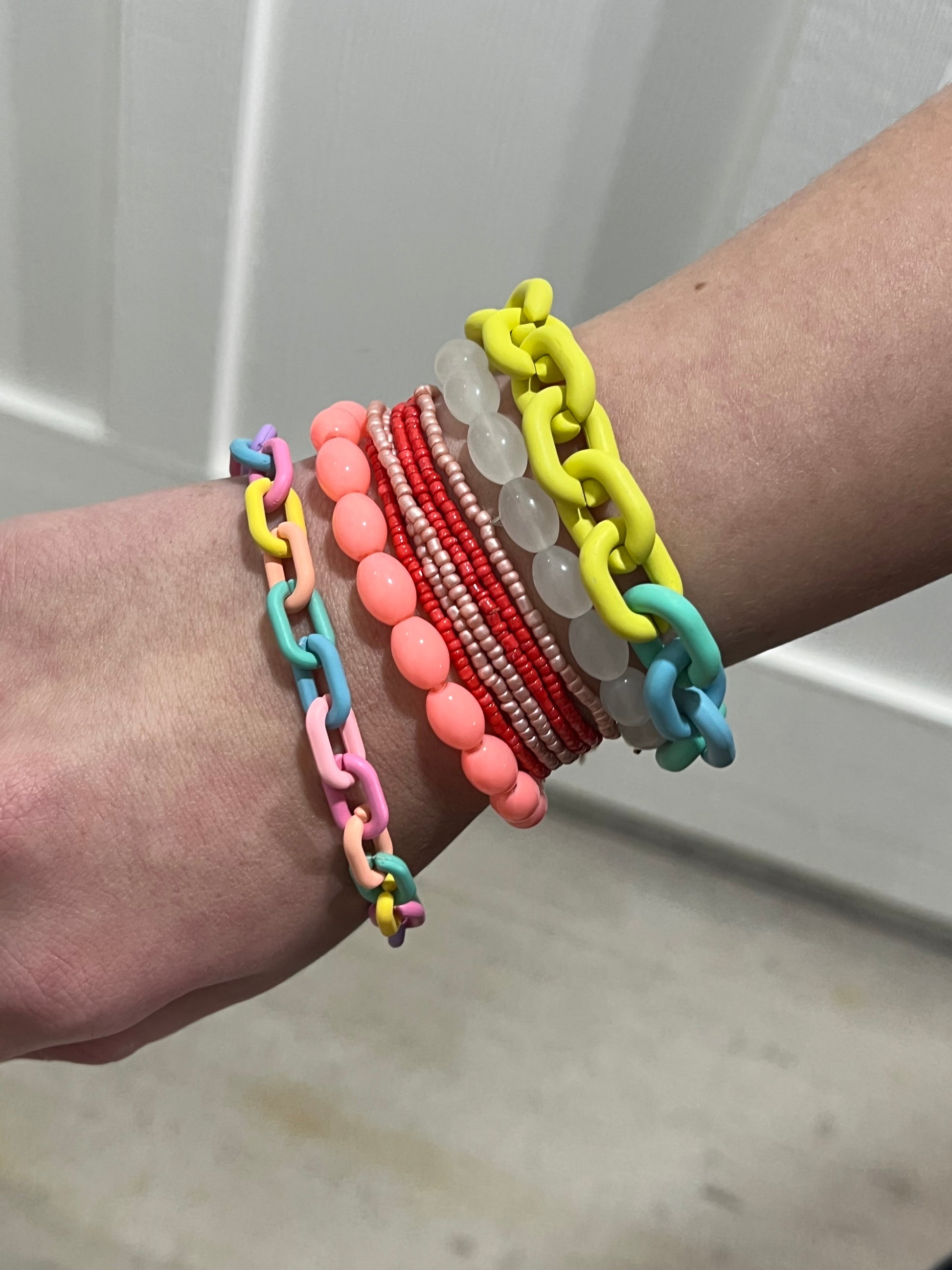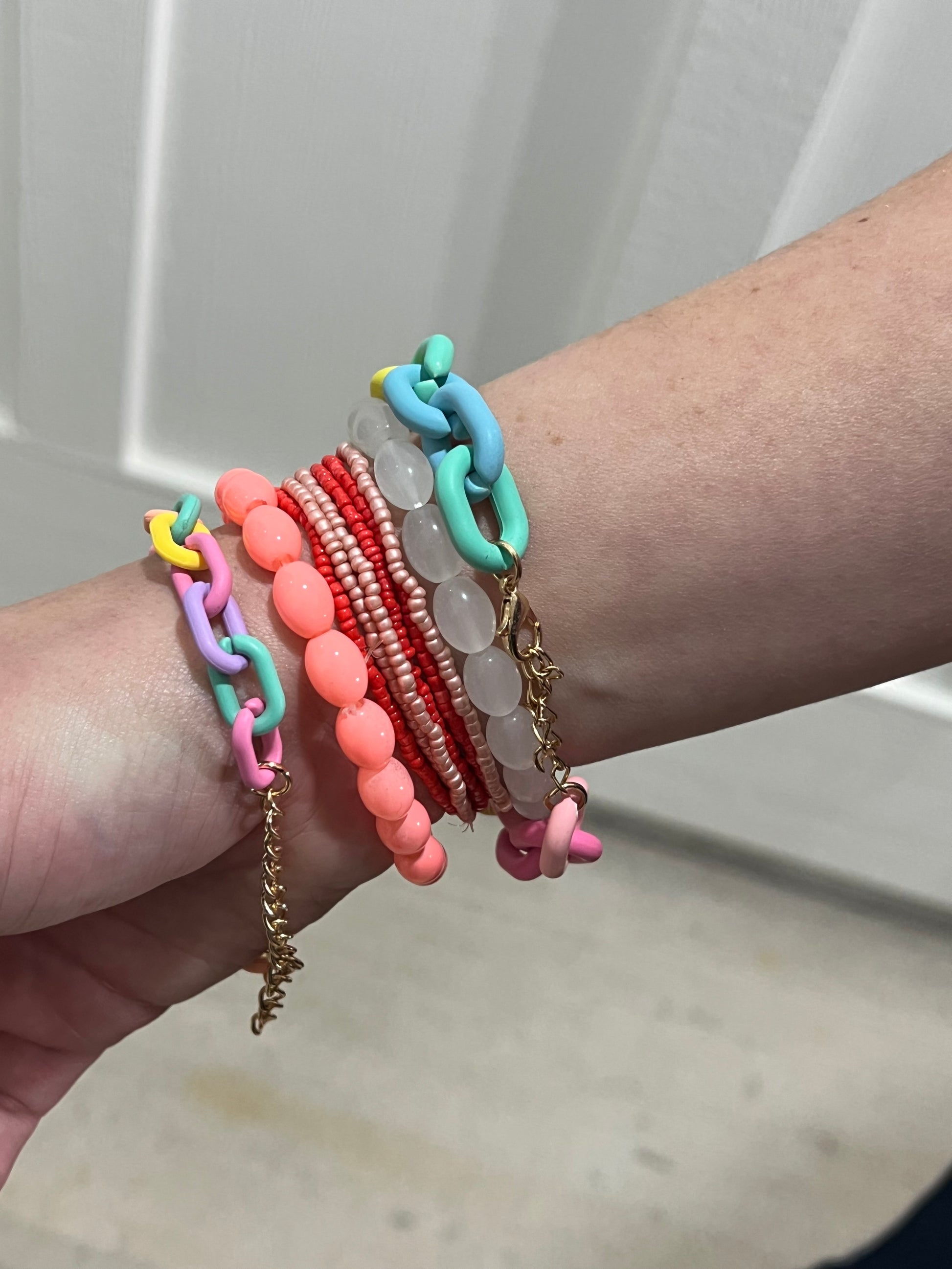 This vibrant beaded bracelet set adds that playful touch to any outfit