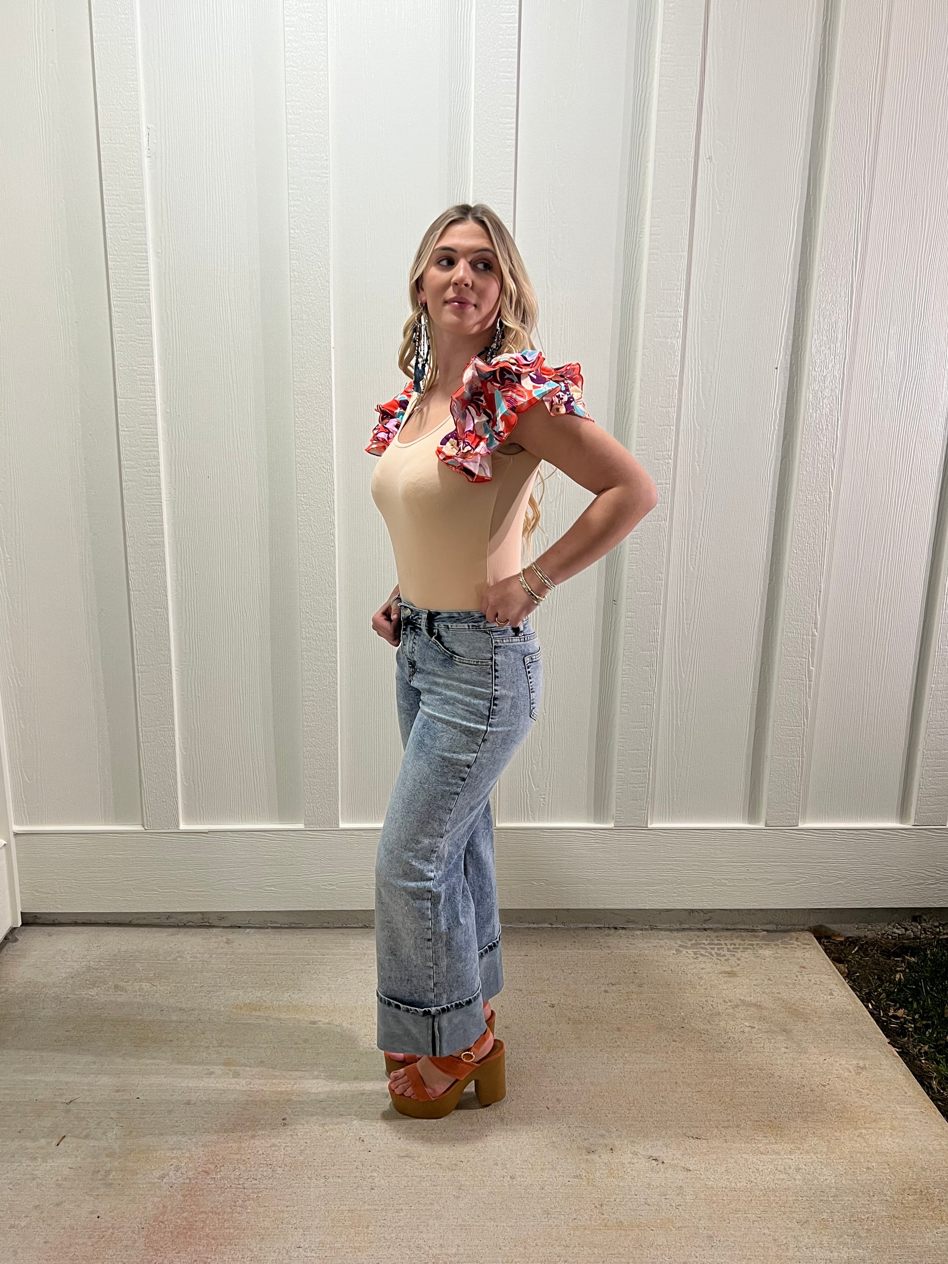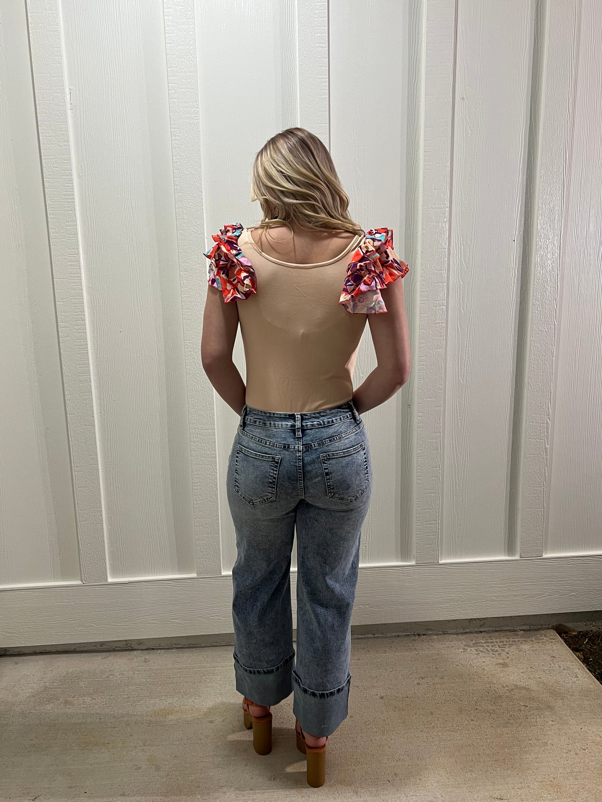 Ribbed Knit Tiered Ruffled Sleeve Bodysuit