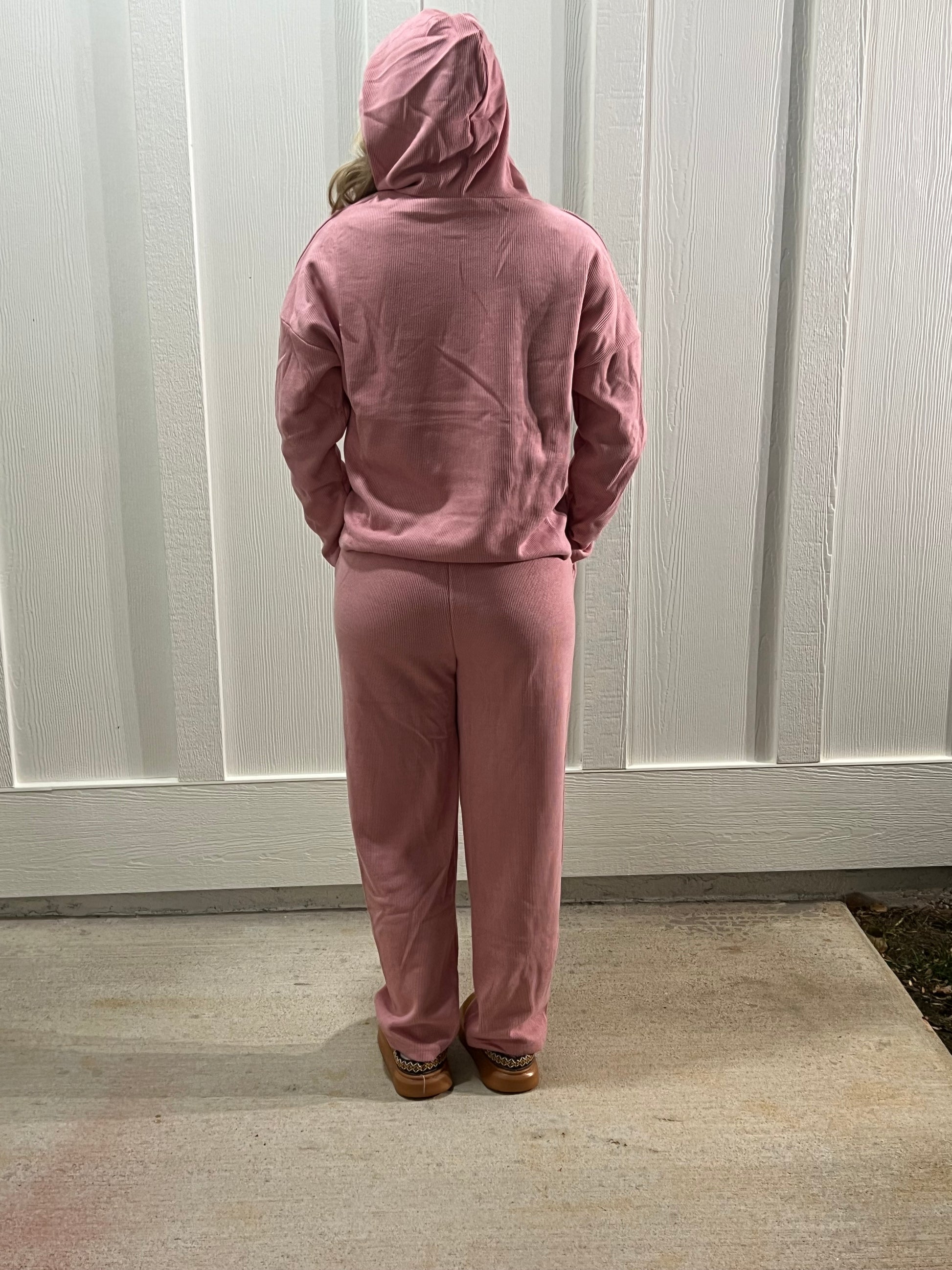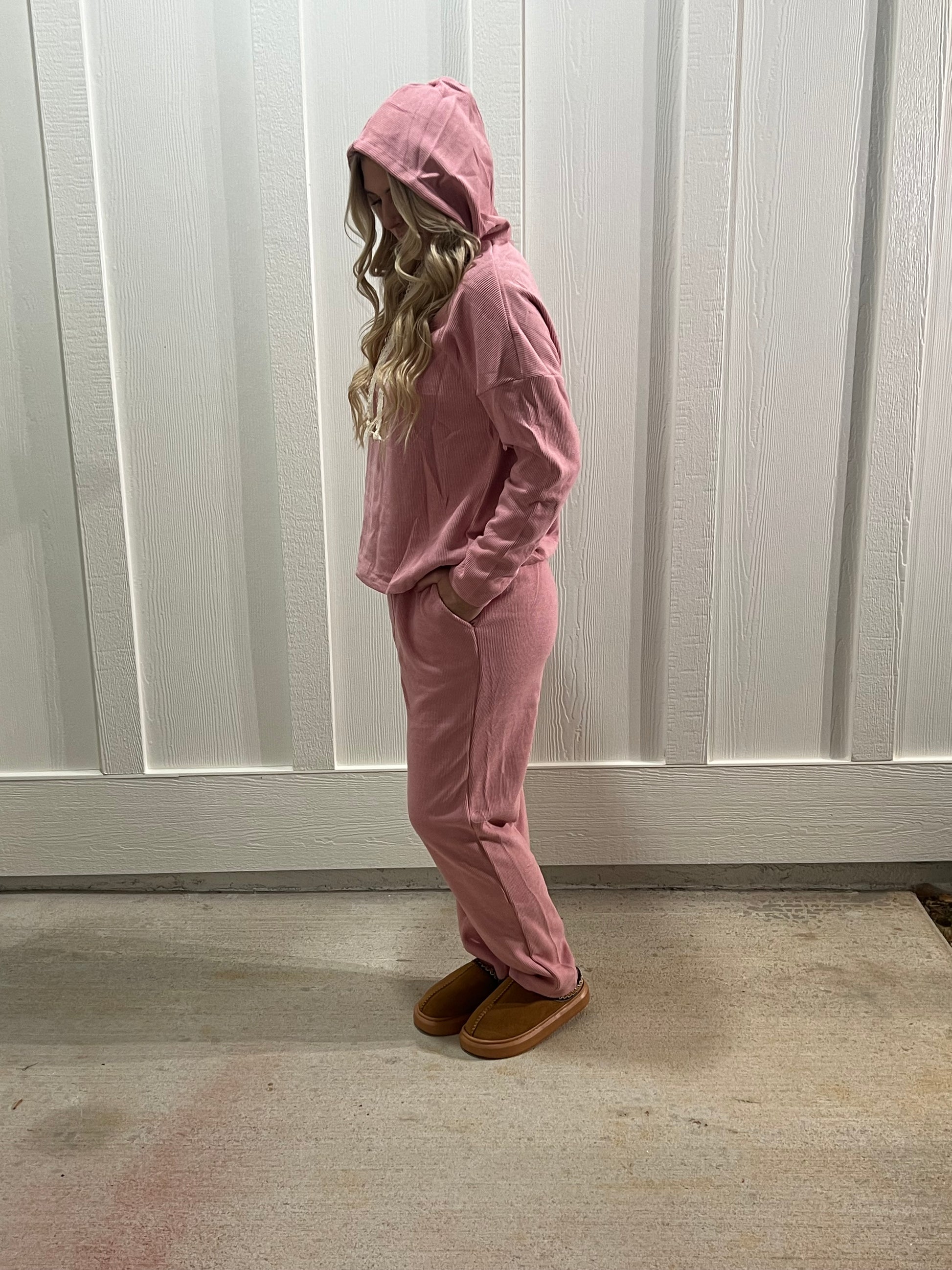 This Corduroy set includes the pullover hoodie and matching pants. Perfect for travel or lounging at home.
