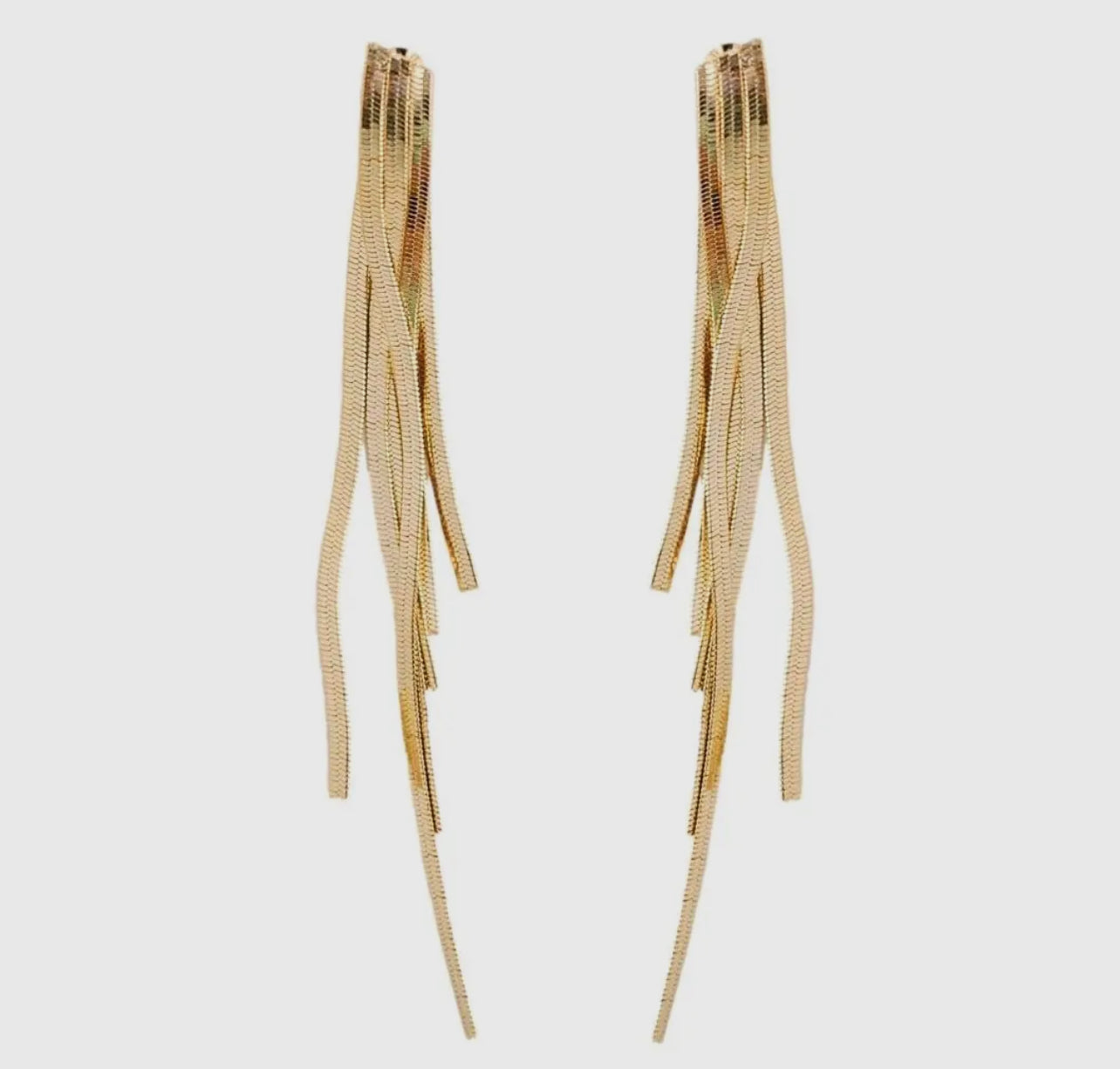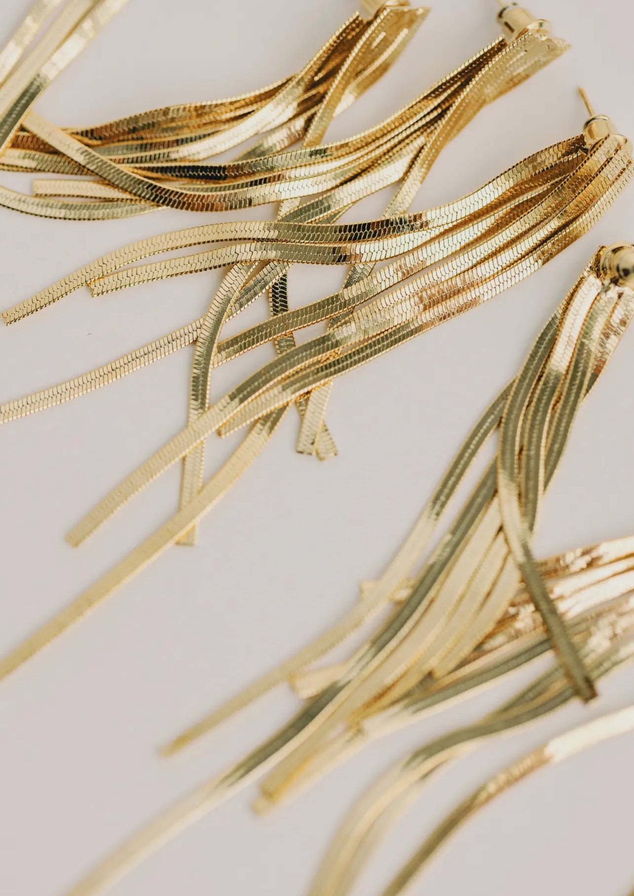 Skinny Gold Cascading Tassel Minimalist Statement Earrings