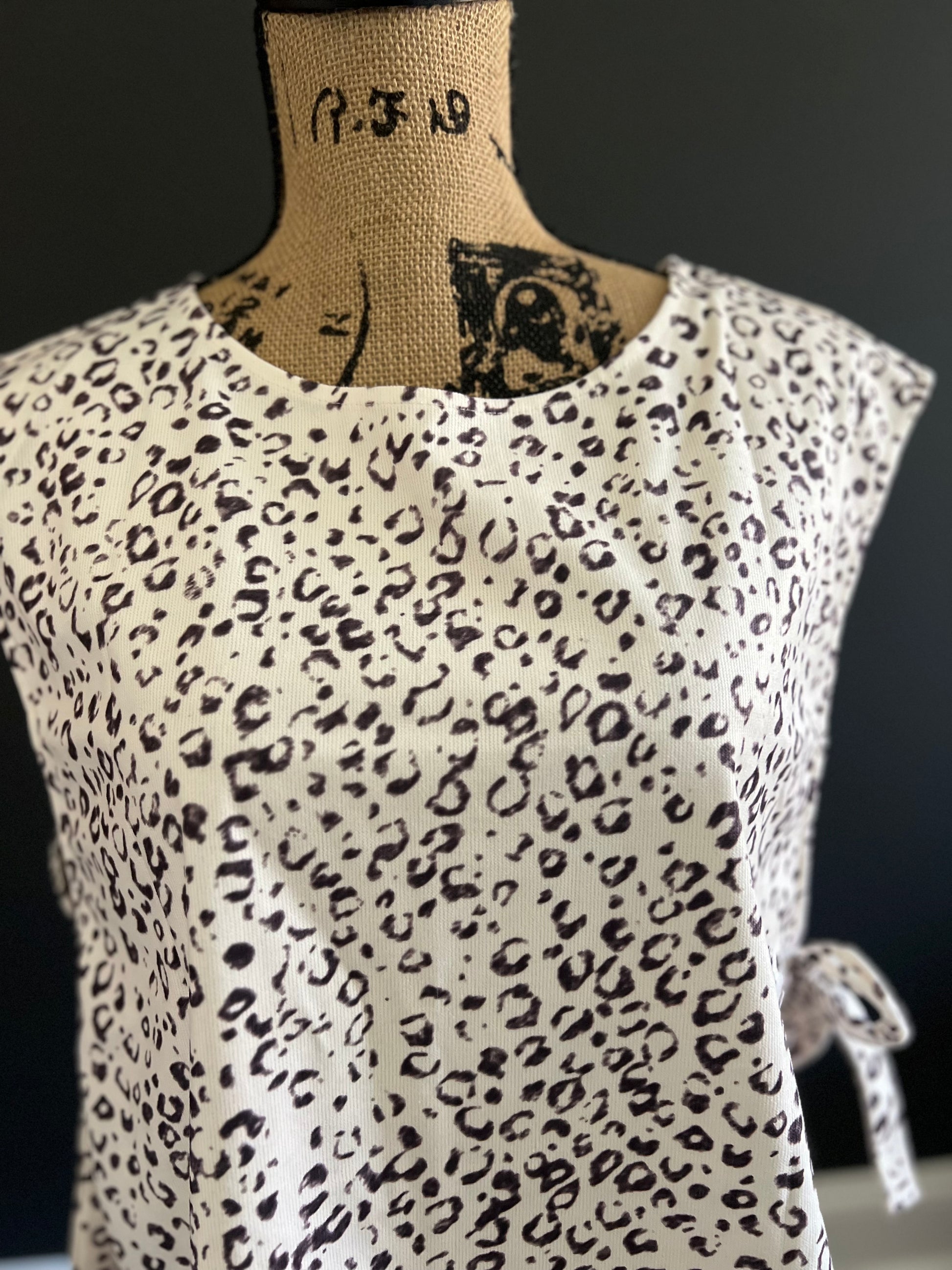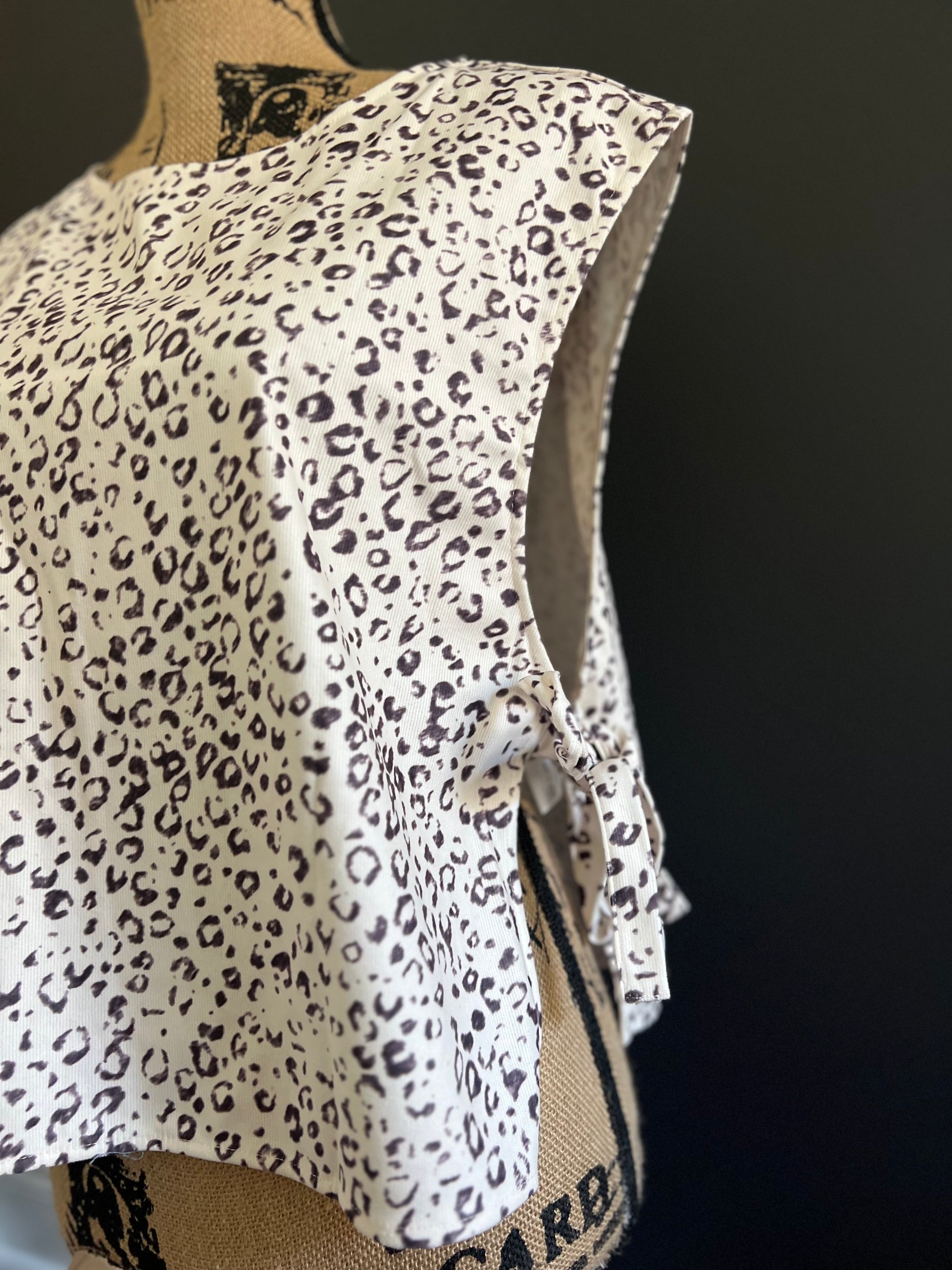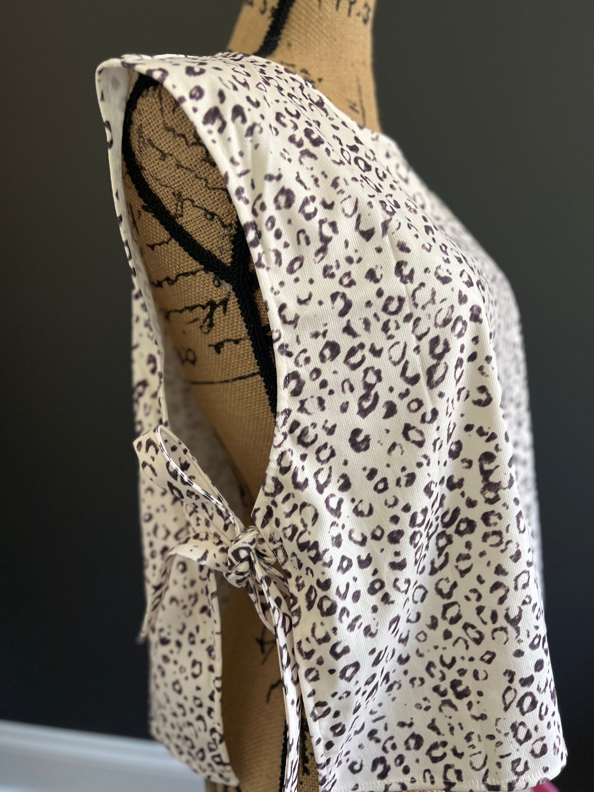 White Bow Pattern Buttoned Side Cropped Sweater Vest